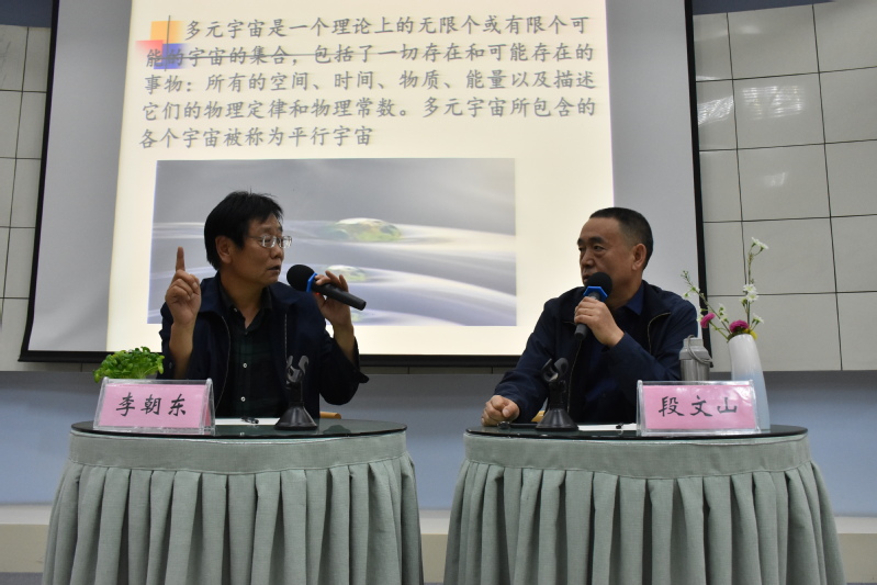 本期主题为“宇宙的认识与物理学的发展”,由a动漫 物理与电子工程学院博士生导师段文山教授主讲,a动漫 副校长李朝东教授主持。甘肃省人大常委会副主任陈克恭,甘肃省委党校张堡教授,马克思主义学院牛正兰教授,哲学学院王金元教授、师庭雄博士、胡好博士、张立恩博士、胡朝都博士以及来自各学院的众多哲学、物理学、天文学爱好者参与本次学术活动。