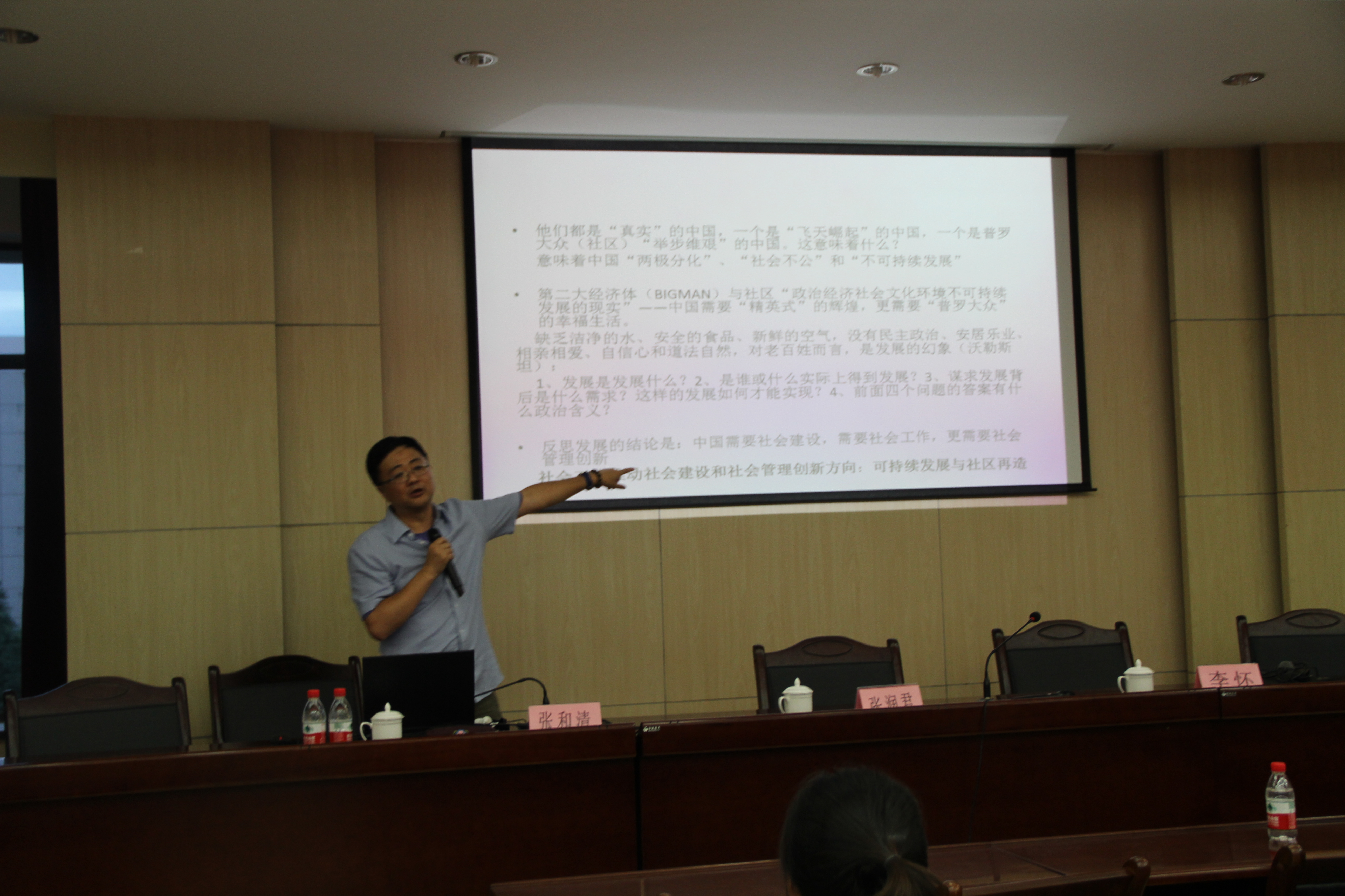 6月26日晚上,应学院邀请,中山大学社会工作系主任张和清教授在教学10号楼D区四楼多功能报告厅作了一场题为“社会工作与社区可持续发展”报告,报告会由a动漫