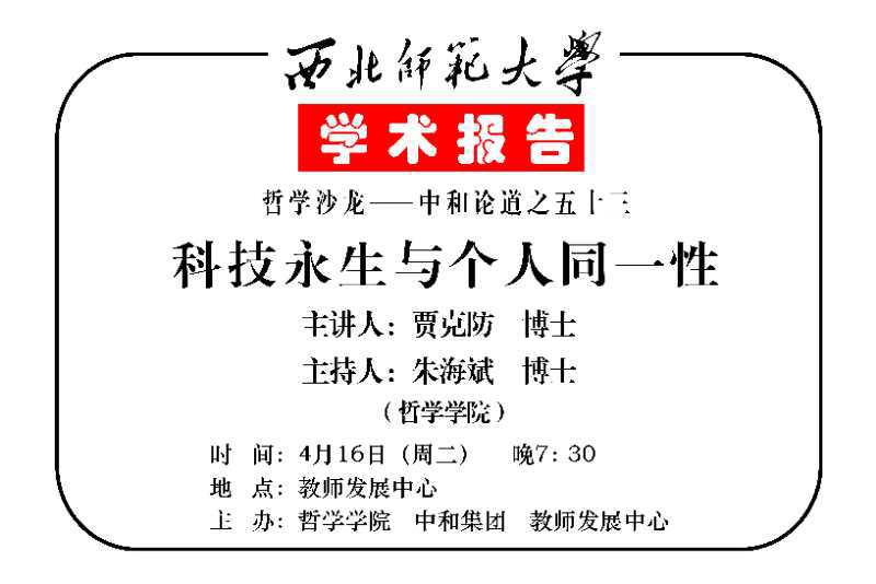 哲学沙龙—中和论道之五十三:科技永生与个人同一性