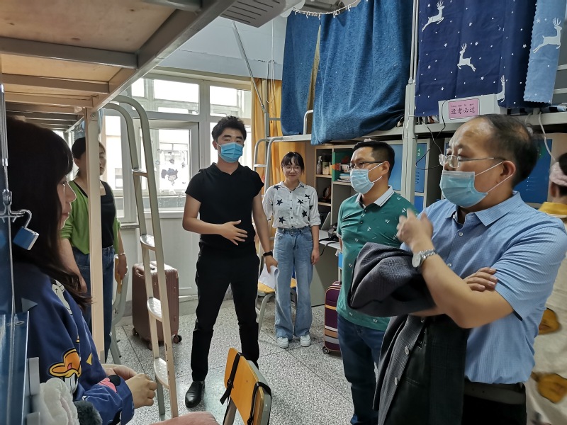 5月14日、20日、21日、22日,哲学学院学生分级错时错峰返校,学院领导学院领导班子、辅导员、班主任坚持学生返校的第一天到宿舍看望慰问,帮助协调解决学生宿舍存在的各种问题。副书记、辅导员联合班主任在学生返校的第二天召开班会,强调疫情防控和安全工作,全面全方位打赢校园疫情防控阻击战。