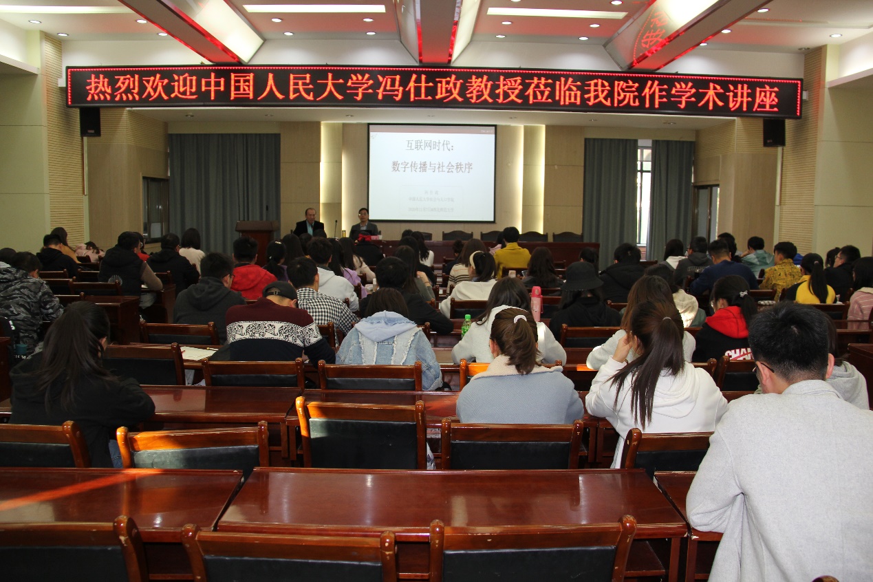 2020年11月7日上午,a动漫 社会发展与公共管理学院“研究生学术月”系列讲座在教学10号楼D区四楼学术报告厅举行,此次讲座由学院邀请中国人民大学冯仕政教授来主讲,讲座主题:“互联网时代:数字传播与社会秩序”,a动漫 部分研究生和本科生参加讲座,本次讲座由李怀教授主持。