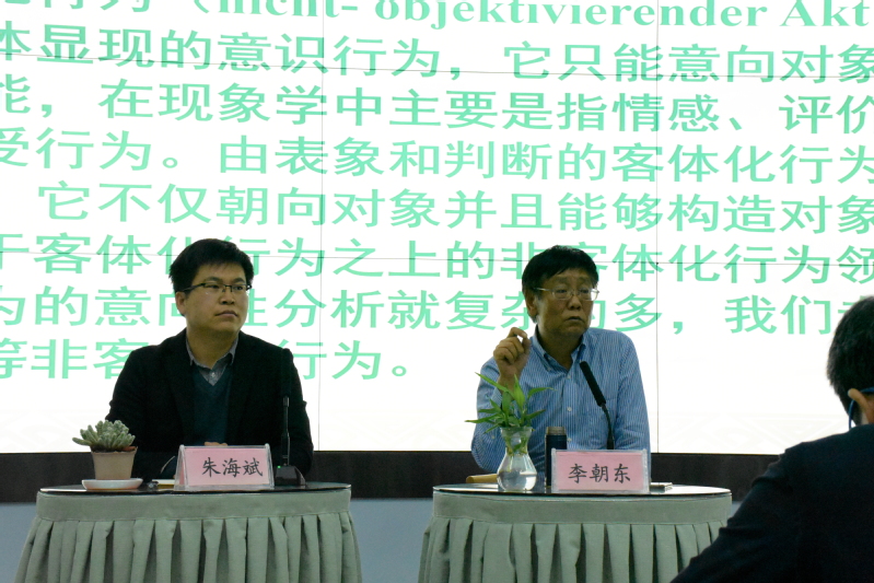论道结尾,主持人朱海斌老师为此次学术报告做了总结。他认为李老师对“现象学的意识行为理论”的报告深入浅出,通过层层剖析和解释,从最基础的感知行为到高层的客体化行为,为我们展示了胡塞尔知识大厦的系统性。