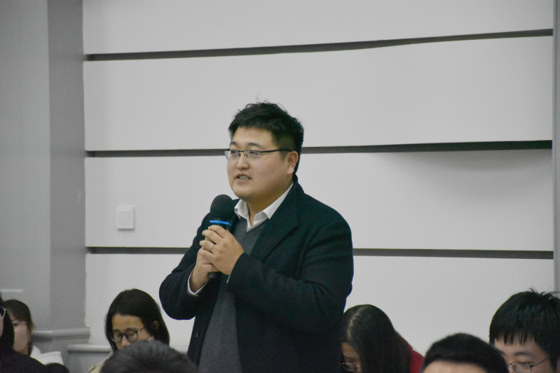 朱海斌老师讲的主题是“Ontologie及其当下重建之启示”。朱老师指出,近百年来,Ontologie先后被译为:“实体论”、“本体学”、“是论”等,其中“本体论”流传最广。日本学者最初译为“本体论”,五十年代开始,用“存在论”代之;陈康先生在上世纪四十年代提出将其译为“本体论”;汉语中“本体论”通常指向“本根论”和“体用论”,但这两种说法与Ontologie有很大的区别,要明白Ontologie就要先明白On的三重面孔。1.On可以作为系词,连接主语和宾语,可分为形式逻辑层面和先验逻辑层面;2.On可以作为谓词,表示在场,这里朱老师分别介绍了康德、弗雷格、蒯因、皮尔士对存在的解释;3.On可以作为动词,表示从在起来到生存,从Sein的词源开始分析,指出海德格尔认为此在的本质乃绽出之生存。最后,朱老师分别举李泽厚、陈来、成中英、丁耘等人的例子谈了当下重建本体论之启示:要构造一种逻辑—-语言—-实在三位一体之系统方才圆满。