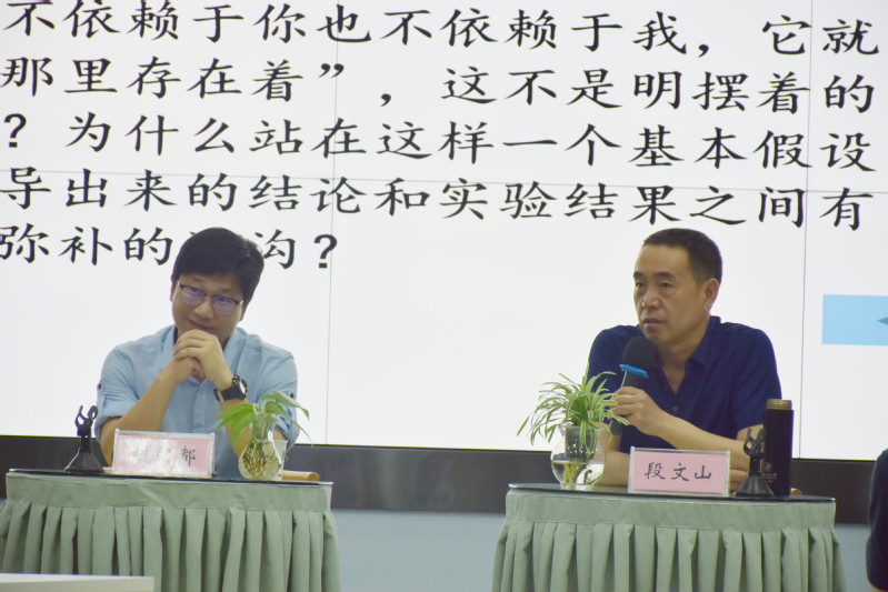 论道结尾,主持人胡朝都老师为此次学术报告作了总结,他认为段老师对量子力学的确定论与随机论的讲座非常精彩,问答环节非常精彩,讲座给我们带来了看待世界的不同方式,而且还启发我们对相关问题进行思考。最后,胡老师感谢段老师为大家带来了精彩报告,本次论道在热烈的掌声中落下帷幕。