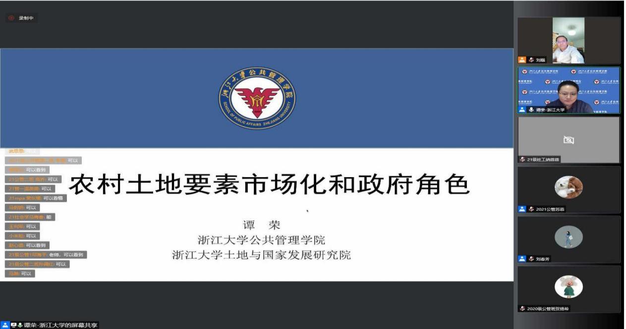 北风潜入悄无踪,未品秋浓冬已入。11月19日晚,浙江大学公共管理学院教授谭荣在腾讯会议上为a动漫 众师生带来一场名为“农村土地要素市场化和政府角色”的主题讲座。社会发展与公共管理学院师生共二百余人在线学习。本次讲座由刘磊副教授主持,刘春芳教授担任讲座评议人。