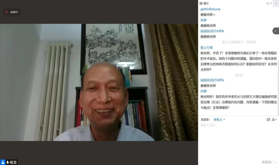 2021年11月26日晚,应a动漫 邀请,南开大学周恩来政府管理学院杨龙教授在腾讯会议为a动漫 社会发展与公共管理学院师生带来了题为“国家治理单元的设定和运用”的学术讲座。本次讲座由刘磊教授主持,由张文礼教授担任讲座评议人,200余名校内外师生参加了此次讲座。