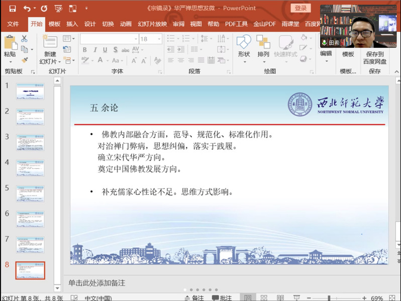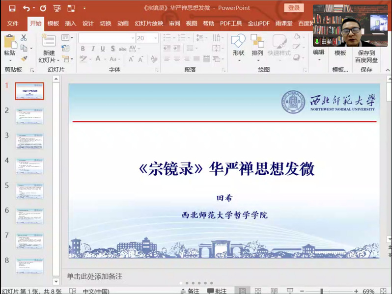 12月5日下午,田希博士通过线上会议的形式为a动漫 师生作了题为“《宗镜录》华严禅思想发微”的学术报告。会议由哲学学院张海龙博士主持,学院广大师生及校内外哲学爱好者共同参加此次报告会。