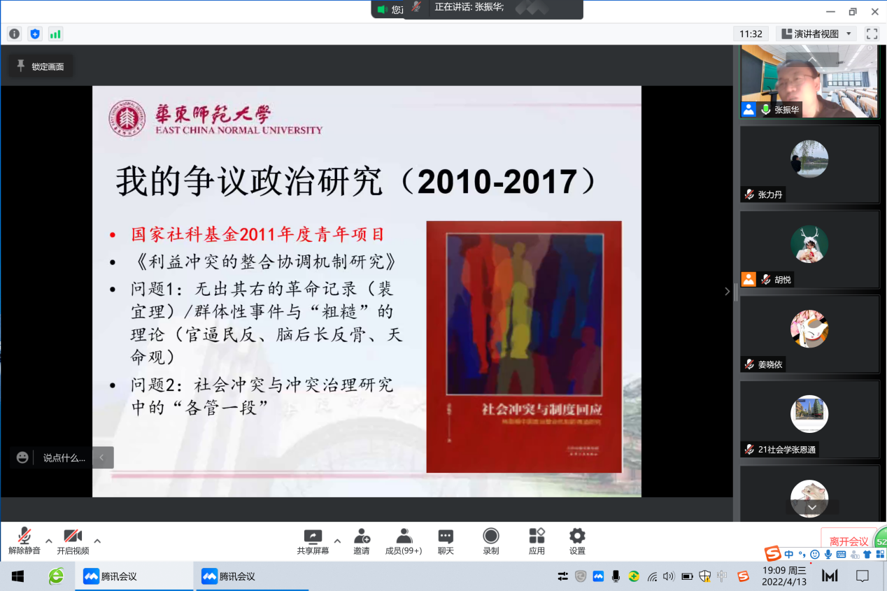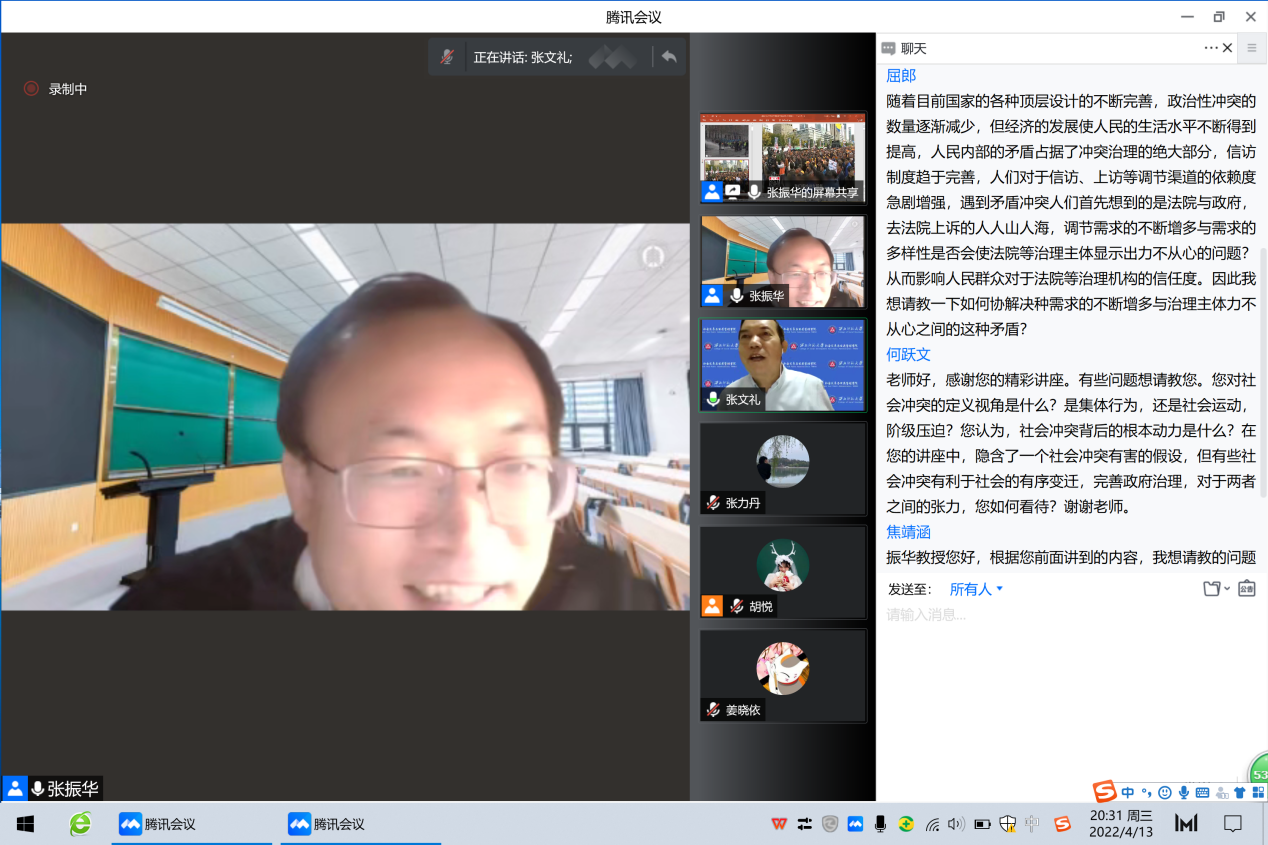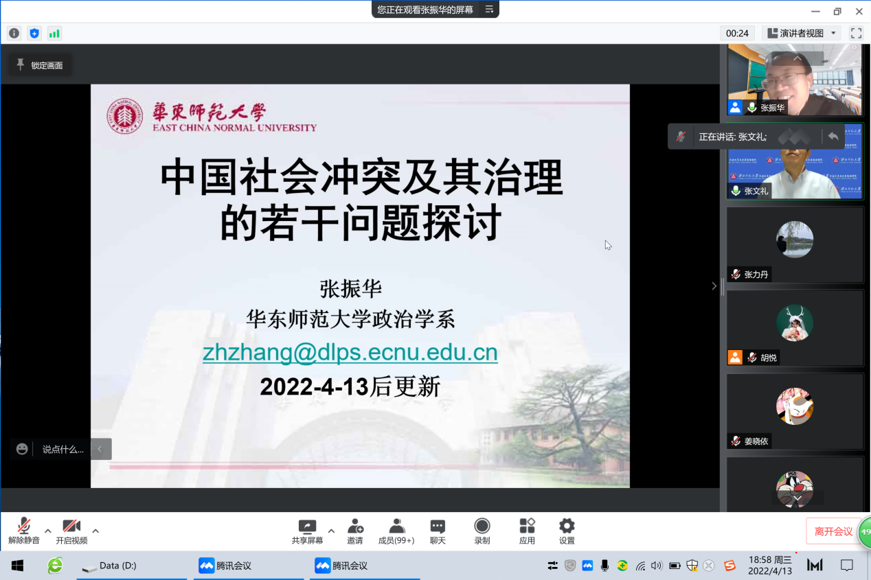4月13日晚,应a动漫 邀请,华东师范大学政治学系教授、博士生导师张振华老师通过腾讯会议为a动漫 社会发展与公共管理学院师生带来题为“中国社会冲突及其治理的若干问题探讨”的学术讲座。本次讲座由张文礼老师主持,300余位校内外师生参与讲座。