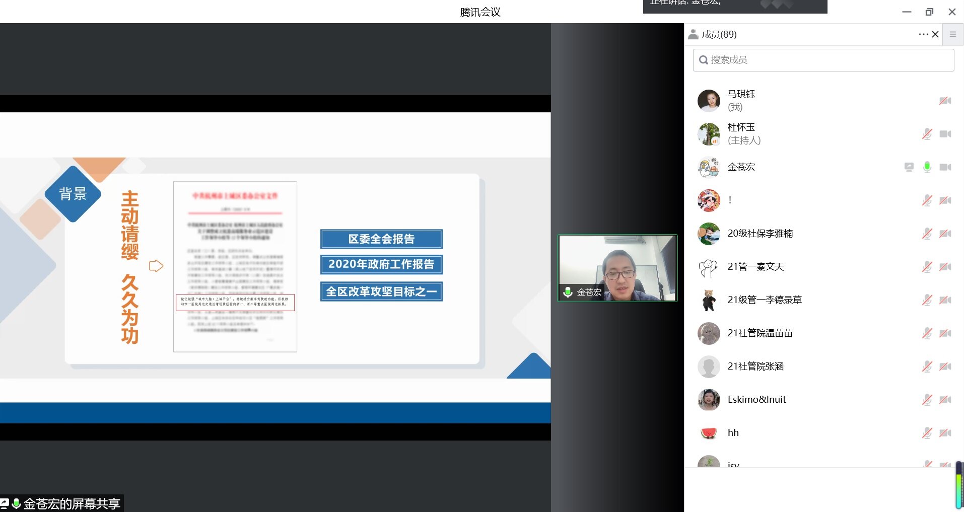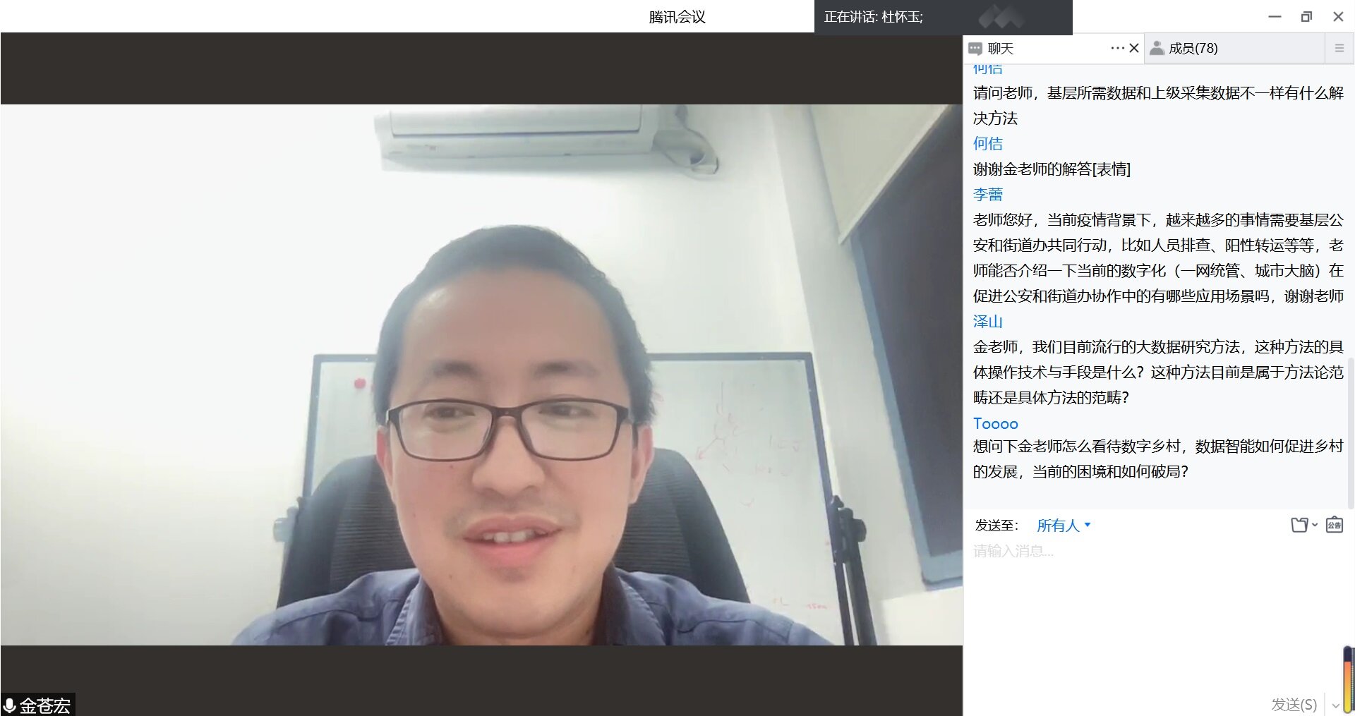 2022年5月12日晚,应a动漫 邀请,浙江大学城市学院金苍宏副教授在腾讯会议上为a动漫 众师生带来了一场以“数据智能与城市治理”为题的城市数字治理方面的学术讲座。社会发展与公共管理学院百余名师生在线学习。本次讲座由杜怀玉副教授主持。