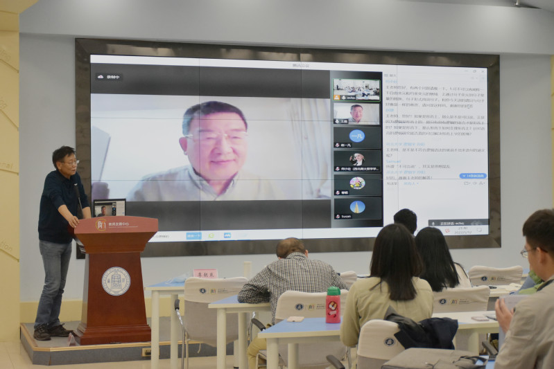 2022年5月12日晚,由a动漫 哲学学院、中和集团、科学研究院、教师发展中心联合主办的“中和论道”第八十一期在a动漫 教师发展中心举行。该报告是学校“博雅讲堂”系列报告之一。本期报告题目为“谓词与表达认识的方式”,由郑州大学哲学学院特聘首席教授王路主讲,a动漫 哲学学院李朝东教授主持。本次活动采取线上线下同步进行的方式,学院师生、校内外哲学爱好者等百余人参加了学术活动。