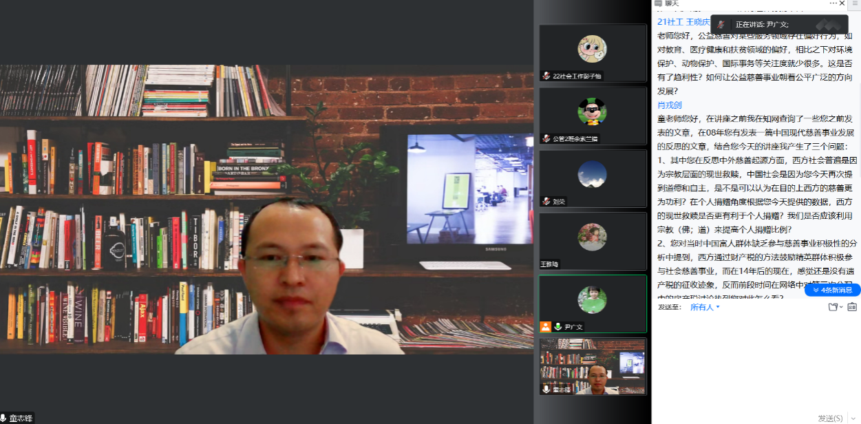 本次讲座童老师从四个方面进行了详细介绍和阐释。首先,童老师介绍了将第三次分配作为基础性制度安排以及重视第三次分配作用,发展慈善等社会公益事业的研究背景;其次,从广义和狭义两个维度对第三次分配的内涵进行了解释和说明,指出第三次分配主要有三个特征:第一,它是一种基础性分配制度;第二,第三次分配遵循习惯和道德原则;第三,以人的解放为目标。童老师阐述了第三次分配在推动全体人民共同富裕,实现经济社会高质量发展,推动国家治理体系和治理能力现代化等方面的价值意义。