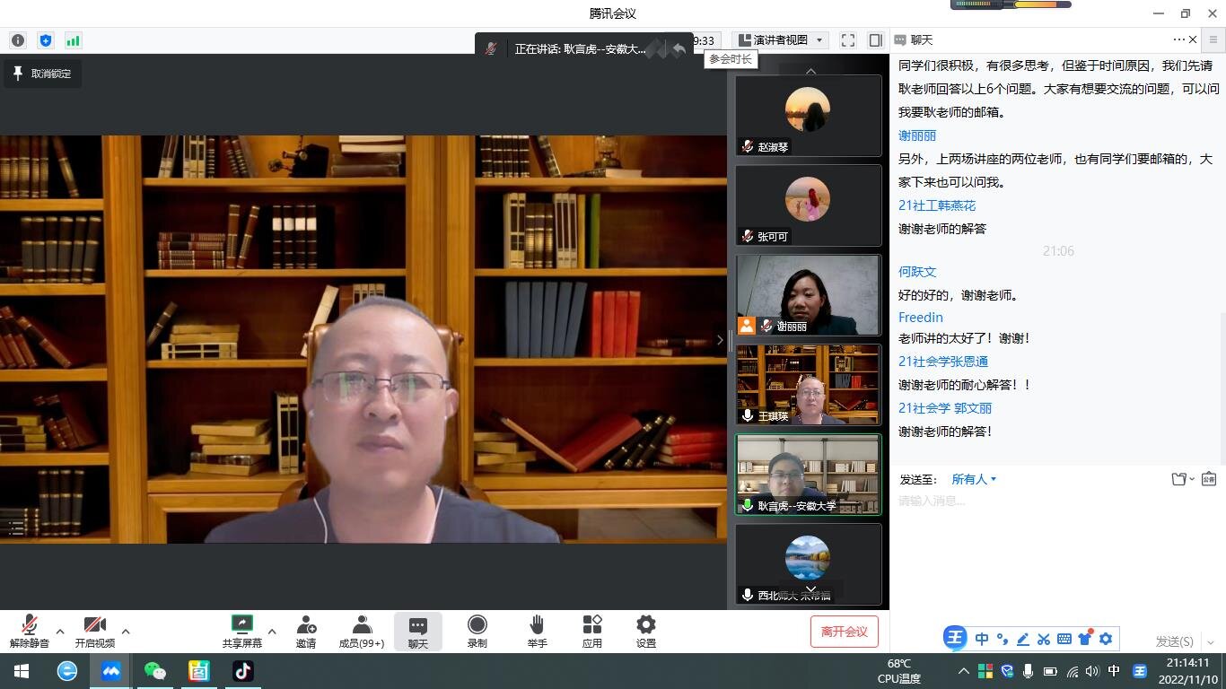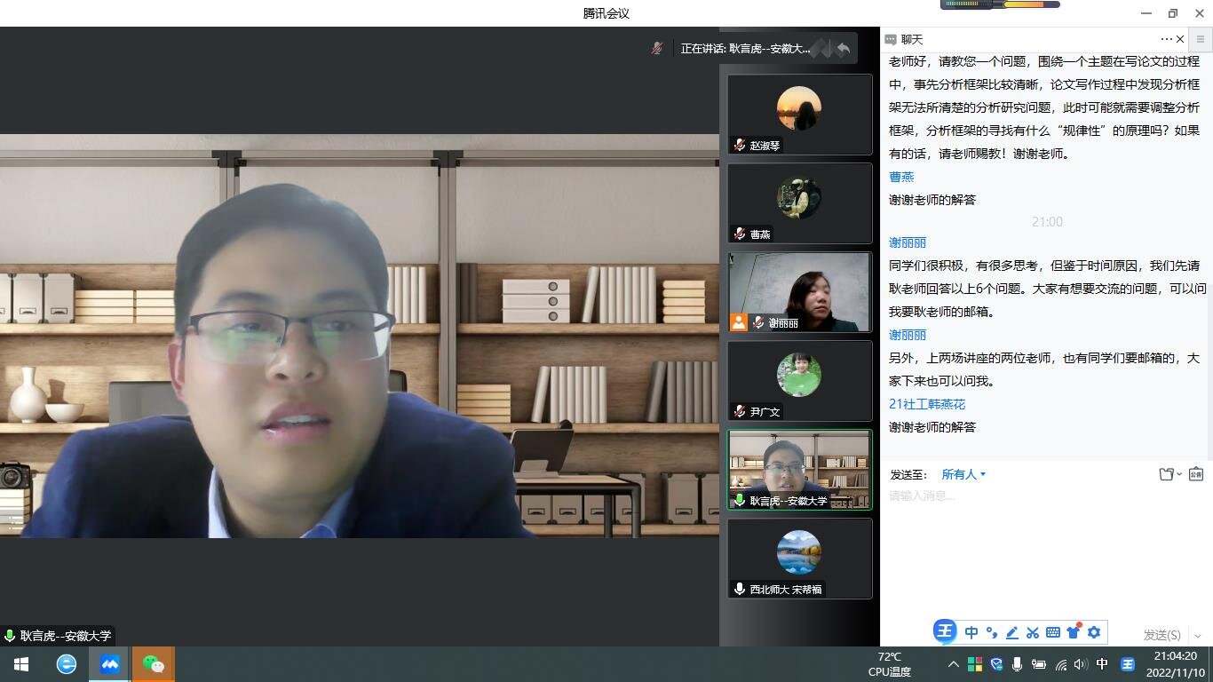 2022年11月10日晚,百廿校庆暨社会发展与公共管理学院十年院庆学术论坛系列学术讲座由安徽大学耿言虎副教授开讲。耿老师为a动漫