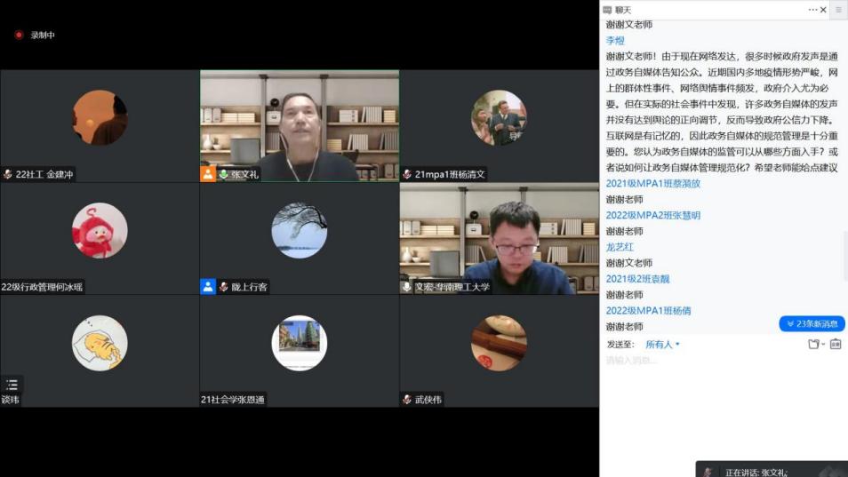 讲座尾声,a动漫 师生与文教授进行了积极互动,同学们对危机情境下城市管理及相关问题提出了许多问题,文教授均做了耐心解答。张文礼教授对文教授的精彩讲座进行了回应,并向文教授再次表达感谢,诚邀文教授在疫情结束后来a动漫 做线下讲座,与a动漫 师生进行更深入的学术交流与探讨。