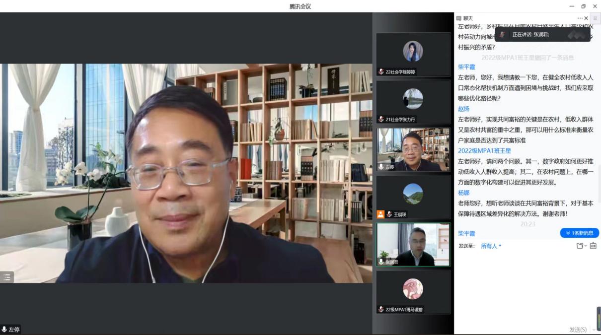 讲座尾声,左停教授与a动漫 师生进行了热烈地交流与讨论,并针对学院师生们提出的问题进行了认真回应。随后,张老师结合自己的观点对左老师此次讲座作了点评。首先,张老师指出随着社会的发展,农村低收入人群的帮扶问题,成为了国家、地方以及各类人群的重要问题。长期的脱贫攻坚之后,我们国家全面建成了小康社会,但是,农村低收入人口的帮扶问题越来越成了全面乡村振兴、实现农业农村现代化和共同富裕等的重大问题中的重中之重。所以,从国家层面上,相近连续出台了一系列的政策,比如:左老师讲的《中共中央国务院关于乡村振兴和脱贫攻坚的有效衔接问题的意见》。2021年10 月,我们国家出台了实现农业农村现代化十四五规划。今年党的二十大,聚焦到共同富裕上,涉及到低收入人口的讲话,针对国家大政方针的落地及见效问题提出了相关规划。然后,张老师指出在农业农村现代化十四五规划里面,第八章第三节主要讲了健全农村低收入人口和欠发达地区的帮扶机制,总共讲了四个方面,提出了要动态监测分类帮扶,集中支持重点帮扶县,对西部地区160个国家乡村振兴重点帮扶县给予集中支持,加强财政转移支付,巩固脱贫攻坚成果和乡村振兴的有效衔接。最后,张老师提出怎么做才能将政策落地?能够对乡村振兴、农业农村现代化到共同富裕有所帮助,这是学者及学子应该认真思考的问题。针对政策怎样落地的问题,张老师指出左老师对低收入人口先做了一个学术的构建,从六个不同的方面,回答了什么是低收入人口。在此基础上,左老师又提出了六个维度的政策选项,针对不同的适用对象提出了创新性的可供选择的政策选项。这样才能真正把乡村振兴、农业农村现代化和共同富裕最难的低收入人口的相关问题精准到位,使得国家下一步的社会救助和反贫困的帮扶政策能够更加科学、合理、准确和具有操作性。张老师指出左老师的讲座精彩丰富,不仅对研究问题具有自己的学术思想和理论探讨,而且左老师对于研究现实热点及难点问题的路径逻辑,值得我们师生共同学习和共同探讨。