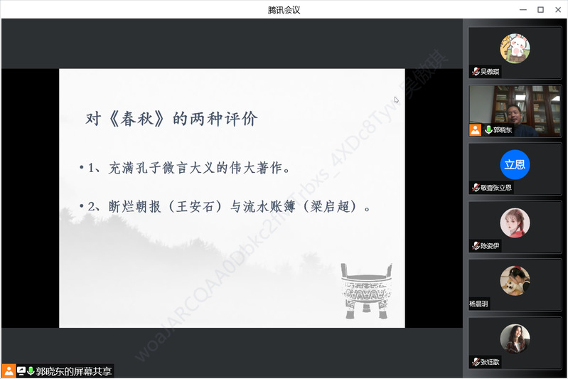 10月31日晚上,复旦大学哲学学院教授、博士生导师郭晓东应邀通过腾讯会议为a动漫 师生作了题为“孔子与《春秋》”的学术报告。哲学学院张立恩副教授主持报告会,校内外师生百余人参加此次报告。