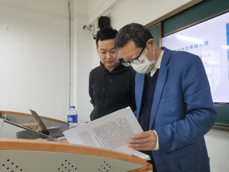 姜宗强院长对杜海涛《形而上学专题》课程进行检查
