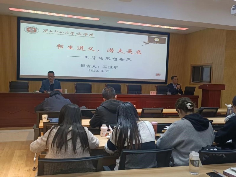 在讲座的第三部分,马世年教授对王符的思想体系进行了重点论述,并将其概括为四大主张、三种批判、两重感叹和一种视角。王符的四大主张包括重学与务本,重德与尚贤,重法与明刑,重民和救边;三种批判为弊乱之政、浇薄之俗和贪枉之吏;两重感叹为贤难之叹和衰世之叹;一种视角则是医者之眼。马世年教授总结道,王符作为“后汉三贤”之一,是汉代第一流的大学者,也是中国古代第一流的思想家。就河陇地区而言,王符是甘肃最伟大的思想家,标志着陇上思想学术的高峰,因此学习王符及其著作在如今看来仍具有十分积极的意义。