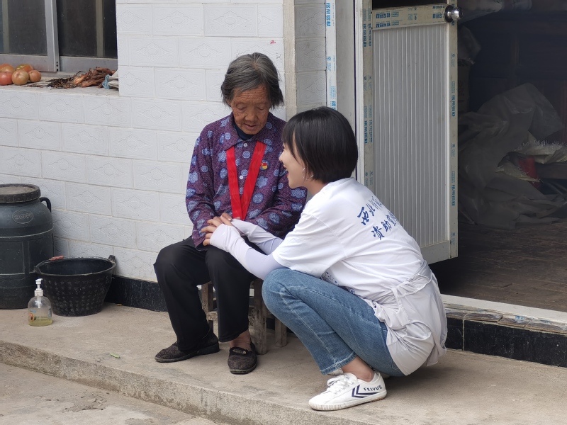 学院党总支副书记张建清和学校机关部门的郭小军、颉东凤三位老师在甘山村开展对口帮扶工作,对村里的情况非常了解。8月15日,在三位老师和村委会的带领下,实践队员们走进退伍军人、老党员和孤寡老人家中开展学习慰问工作,亲身感受他们的日常生活。