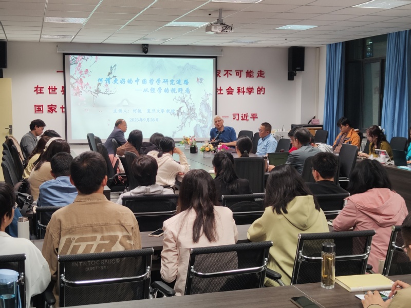 9月26日晚,复旦大学特聘教授、哲学学院博士生导师何俊教授应邀为a动漫 师生作了题为“何谓更好的中国哲学研究进路?——从经学的视野看”的学术报告。哲学学院张立恩教授主持报告会,学院师生参加本次学术报告会。
