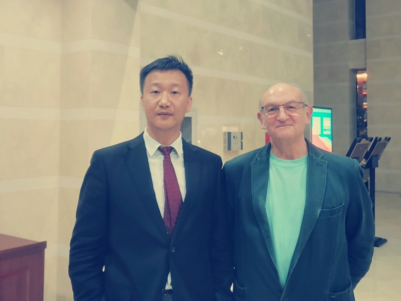 会上,孙圣博士还重点同法国国际当代艺术家协会主席、前法国经济部部长、弗雷德里克·伯纳德(Frédéric Bernard)先生,中国人民大学艺术学院郑晓华教授进行了深入的学术交流,并与中国科学院大学石自东教授互赠作品集和学术著作。