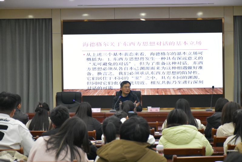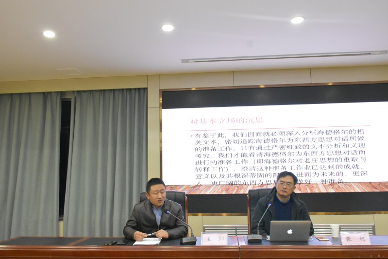 2023年12月1日晚,由a动漫 哲学学院、中和集团、科学研究院以及教师发展中心联合主办的“中和论道”第104期在致公楼D区四楼报告厅举行。本期讲座主题为“一切皆道:论海德格尔关于中西方思想对话的立场与沉思”,贵州大学哲学学院张柯教授主讲,哲学学院王珅副教授主持。校内外师生约160余人现场聆听此次学术报告。