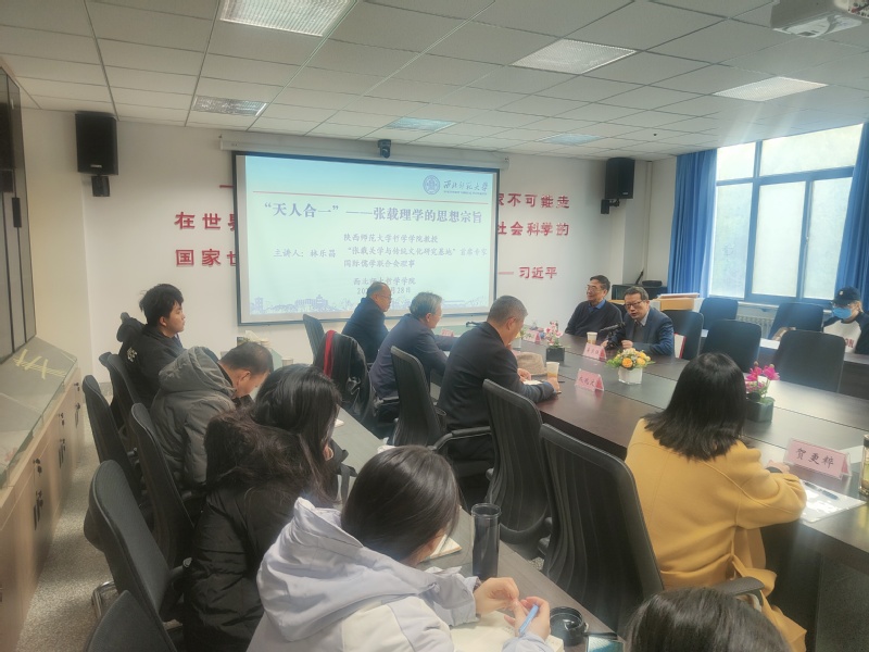 讲座伊始,林老师提出,“天人合一”是张载理学的思想宗旨,而“天人一气”是不能作为张载理学思想宗旨的。