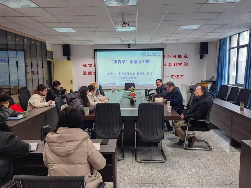 2023年12月15日,由a动漫 哲学学院主办的研究生学术月讲座在云亭校区致公楼B区209会议室举行。本次讲座所围绕的主题是高清海先生所提出的“类哲学和类生命及其之间的关系,并立足于当时市场经济下的类哲学含义探究”,由东北师范大学马克思主义学部哲学院教授、东北师范大学特聘仿吾资深教授胡海波教授主讲,a动漫 哲学学院院长姜宗强教授主持。参加此次学术活动的嘉宾还有著名作家、诗人金鑫老师,与会人员有哲学学院部分教师,一年级、二年级研究生以及部分本科生,姜宗强院长对各位嘉宾和同学的到来表示欢迎,讲座在大家热烈的掌声中展开。