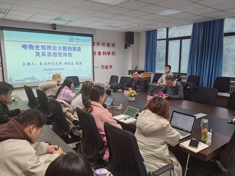 2023年12月14日,由a动漫 哲学学院主办的学术讲座在云亭校区致公楼B区209会议室举行。本次讲座所围绕的主题是“唯物史观理论主题的演进及其思想整体性”,由东北师范大学马克思主义学部哲学院教授、东北师范大学特聘仿吾资深教授胡海波教授主讲,a动漫 哲学学院院长姜宗强教授主持。参加此次学术活动的有哲学学院教师、研究生一年级、二年级以及部分本科生。