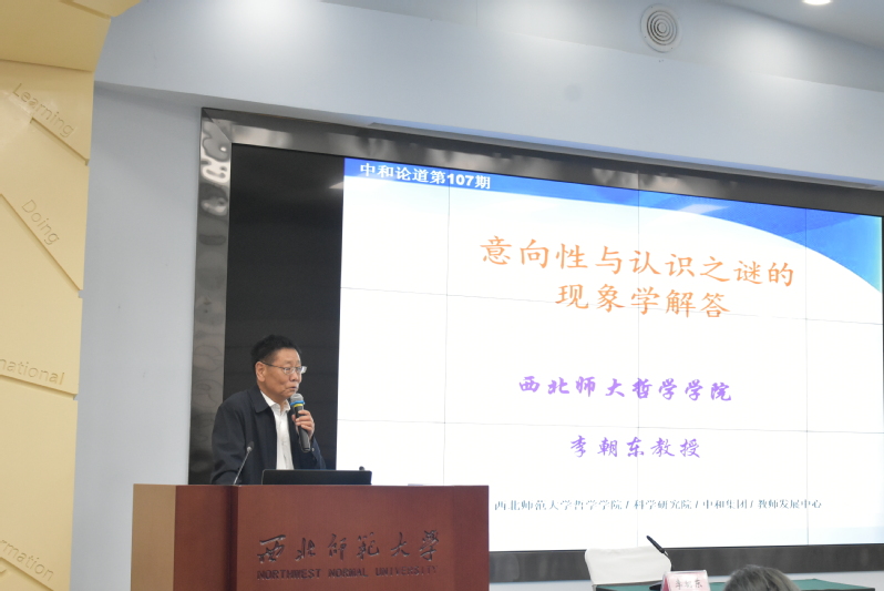 2024年3月13日晚,由a动漫 哲学学院、科学研究院、中和集团以及教师发展中心联合主办的“中和论道”第107期在教师发展中心如期举行。本次讲座的主题是“意向性与认识之谜的现象学解答”,由我校哲学学院李朝东教授主讲、朱海斌副教授与谈、王珅副教授主持,来自甘肃省委党校及我校的150余名师生参与本次讲座。