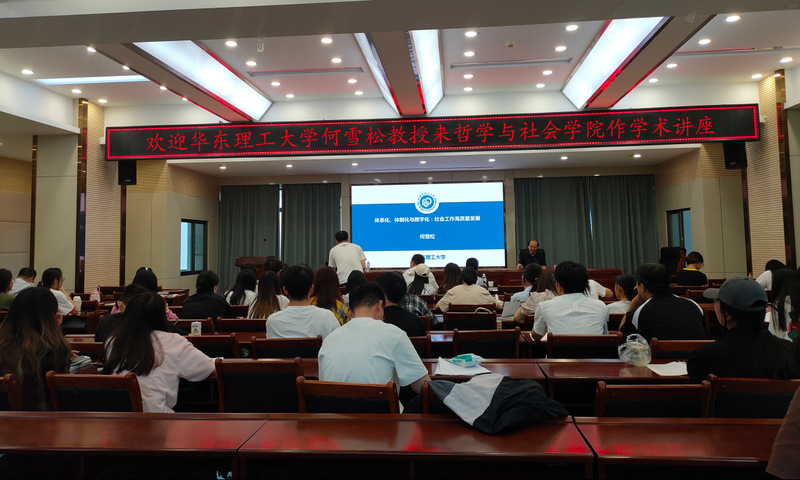 2024年6月30日9:00,华东理工大学何雪松教授应邀在a动漫 10号教学楼D区四楼学术报告厅为a动漫 师生带来了题为“体系化、体制化与数字化:社会工作高质量发展”的学术讲座。本次讲座由李怀老师主持,a动漫 师生参加并听取了此次讲座。