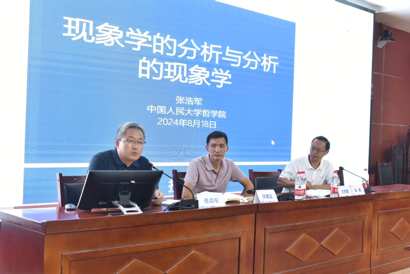 8月18日下午,为期两天的第二十八届中国现象学年会闭幕式暨主题报告在a动漫 云亭校区致公楼D座一楼报告厅举行。主题报告暨闭幕式由中国现象学专业委员会理事、中山大学朱刚教授主持。北京大学哲学系吴增定教授和中国人民大学哲学学院张浩军教授做大会闭幕式主题报告。