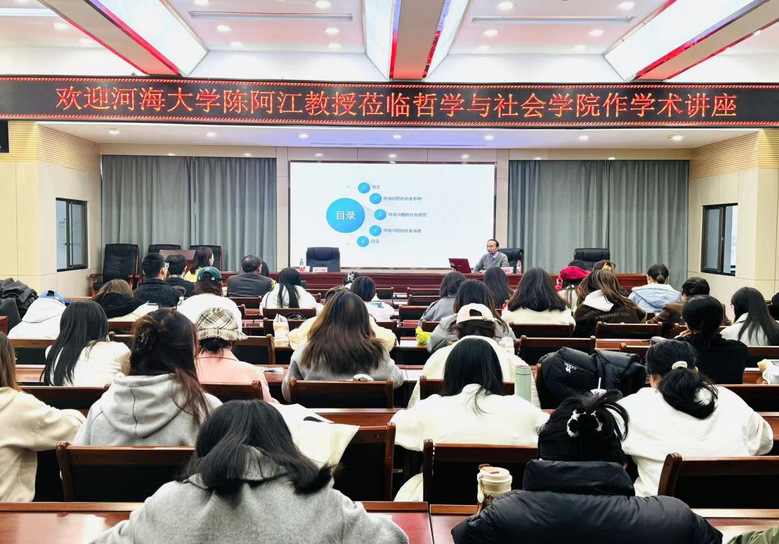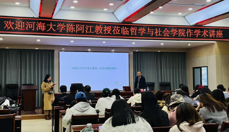 2024年11月22日下午16:40,河海大学陈阿江教授应邀在a动漫 10号教学楼D区四楼报告厅为a动漫 师生带来了题为《环境社会学体系之建构:社会问题的视角》的学术讲座。本次讲座由谢丽丽副教授主持,社会学与社会工作专业全体学生参加并听取了此次讲座。
