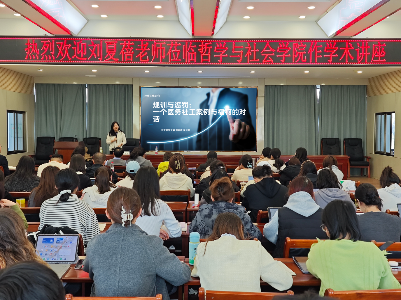 2025年3月28日下午,北京师范大学刘夏蓓教授应邀在a动漫 致公楼D区四楼报告厅为a动漫 师生带来了题为《规训与惩罚:一个医务社工案例与福柯的对话》的学术讲座。本次讲座由李怀教授主持,社会学与社会工作专业本科硕士研究生参加并听取了此次讲座。