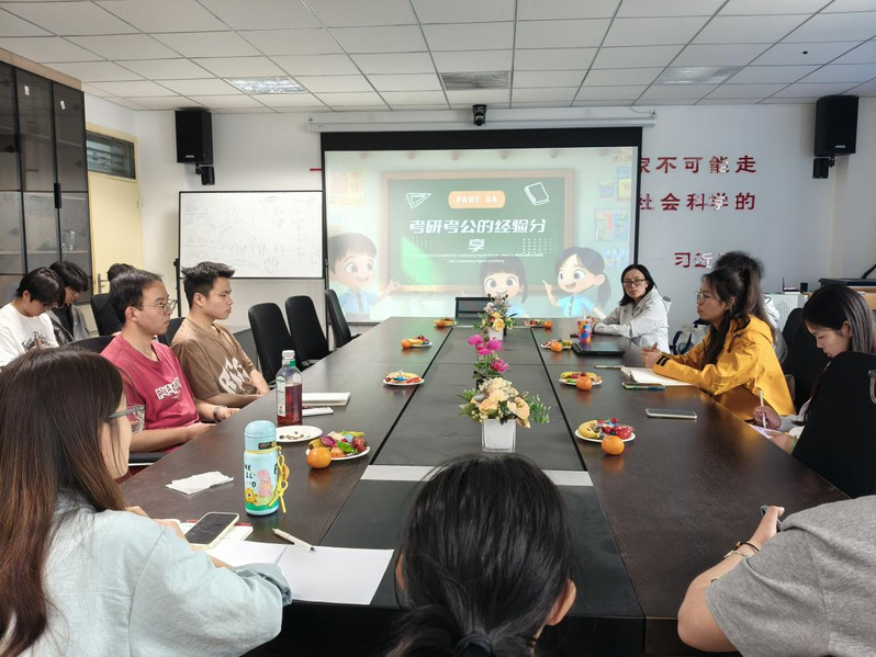 几位2025届毕业生从保研策略、考研备考、求职准备、复习规划、学习心态等方面分享了个人经验。推免至上海大学的2025届社会学专业本科生汤镇华以自身经历为基础,分享了“时间规划线+成果积累线”双线并进的保研策略,为同学们提供了切实可行的保研路径参考;考研到广东省社会科学院的2025届社会学专业本科生汪瑞、考研到西北农林科技大学的2025届社会学专业本科生邵新艳聚焦考研备考,从备考规划到院校选择倾囊相授,反复强调“选对院校是上岸关键”;省考成功考取至庆阳市合水县信访局的李芳娟分享了自己成功考取公务员的经历,以“每一次需要努力的念头,都是未来的你在向现在的你求救”的格言激励大家,引发同学们的共鸣。在自由交流环节,师生及2025届毕业生针对“考研实习如何平衡”、“考公岗位如何筛选”等具体问题,进行细致交流。