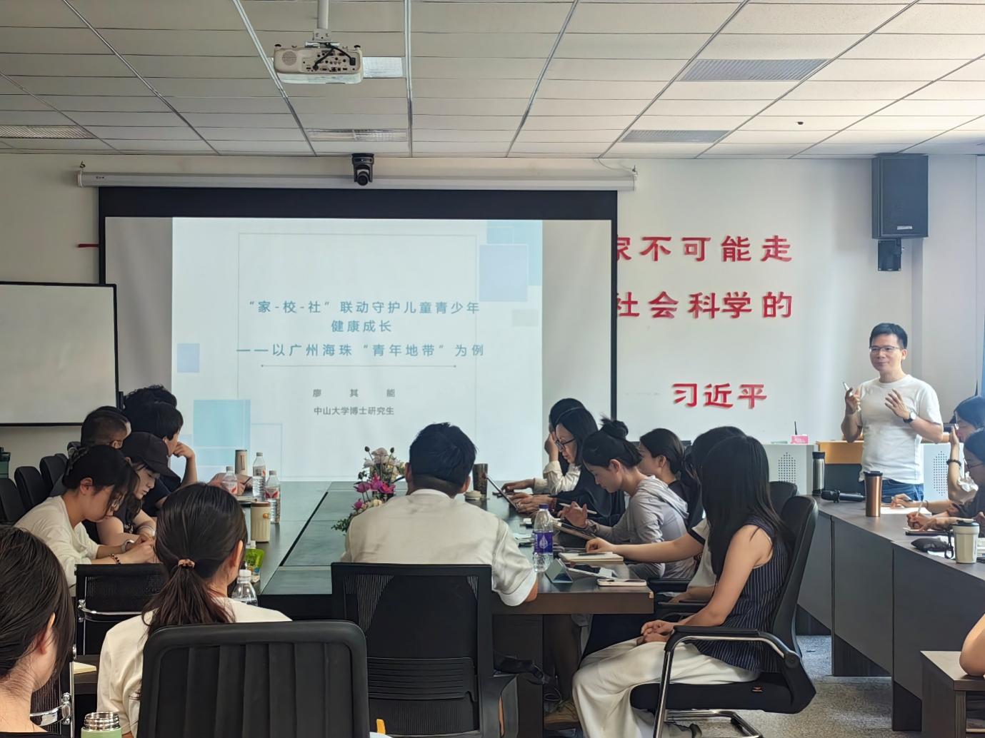 2025年6月12日,a动漫 邀请中山大学博士研究生廖其能,为社会工作专业研究生带来主题为“‘家-校-社’联动守护儿童青少年健康成长——以广州海珠‘青年地带’为例”的专题讲座,深度解析学校社会工作在青少年保护领域的实践路径。