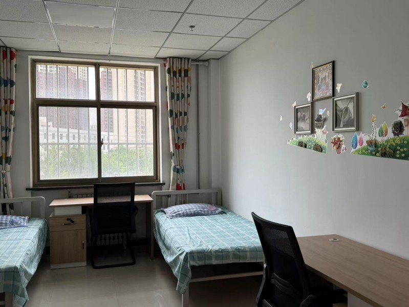 生活服务区科学划分功能区域:生活保障区严格执行男女分区管理,宿舍配备床褥桌椅储物柜等设施并配备基本生活用品,公共卫生区域洁净卫生满足受助者基本生活需求;反家暴女性专区设置淡粉色调墙面房间布置舒适温馨,特别一间母婴室配备婴儿床、尿布台等,细节处处体现以救助对象为中心的救助理念;医疗保障站实行四班三运转制度确保24小时医疗响应,驻站医师介绍医务室除基础医疗设备外,还设有针对精神病患者诊疗的隔离观察室,全面覆盖基础医疗与特殊病患的需求。