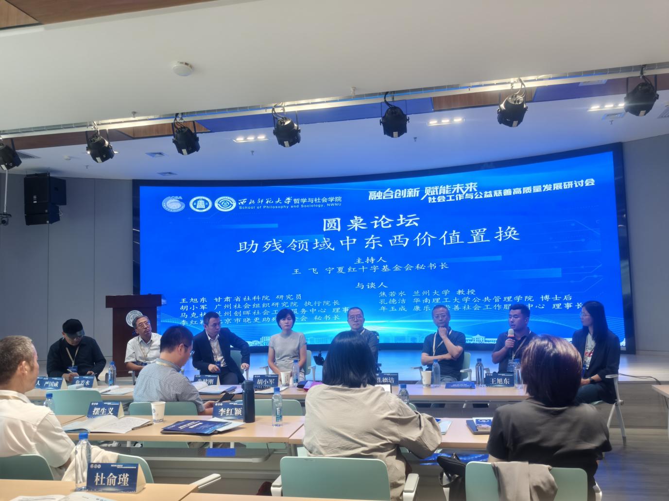 会议期间,还举办了“丝路慈善圆桌对话:助残领域中东西价值置换”,甘肃省社科院研究员王旭东、兰州大学焦若水教授、广州社会组织研究院执行院长胡小军、华南理工大学公共管理学院博士后孔德洁、兰州创晖社会工作服务中心理事长马克林、康乐县崇善社会工作服务中心理事长年玉成、北京市晓更助残基金会秘书长李红颖等10余人参与座谈,共同围绕助残领域中东西价值置换展开交流与讨论。稍后,甘肃兴邦社会工作服务中心理事长摆生义进行论坛观察发言。