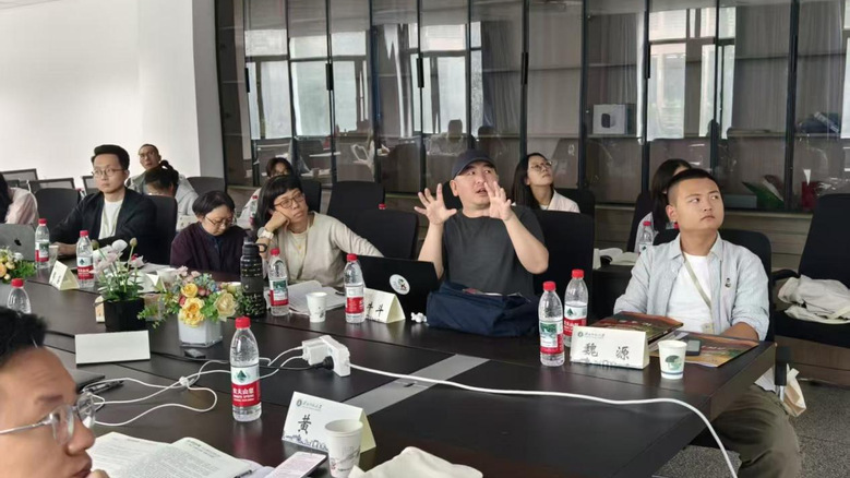 西北民族大学讲师马晓磊的发言题目是《基于“黄河文化”IP视域下的兰州滨河当代公共艺术设计策略与空间活化实践研究》,他将“黄河文化”作为一个核心IP(Intellectual Property,知识产权),系统性地运用国内外先进理念与方法,针对兰州滨河这一特定场域,开展融“历史解码-当代转译-空间活化-技术赋能”于一体的公共艺术设计策略研究,通过整合国内外学术资源,在“黄河文化”视域下,构建一套兼具理论高度与实践深度的、专属于兰州滨河空间的当代公共艺术设计策略体系与空间活化路径。中央民族大学讲师区缵、复旦大学本科生朱嘉祺作为与谈人。区缵关注到黄河文化与精神缺乏公认定义,认为设计应先明确主题内容而非仅侧重技术方案并期待设计落地,过程中可以结合相关案例。朱嘉祺认为本研究打破了当代艺术研究中理论与实践的割裂并建议写作时回溯理论源头、纳入观众感受。